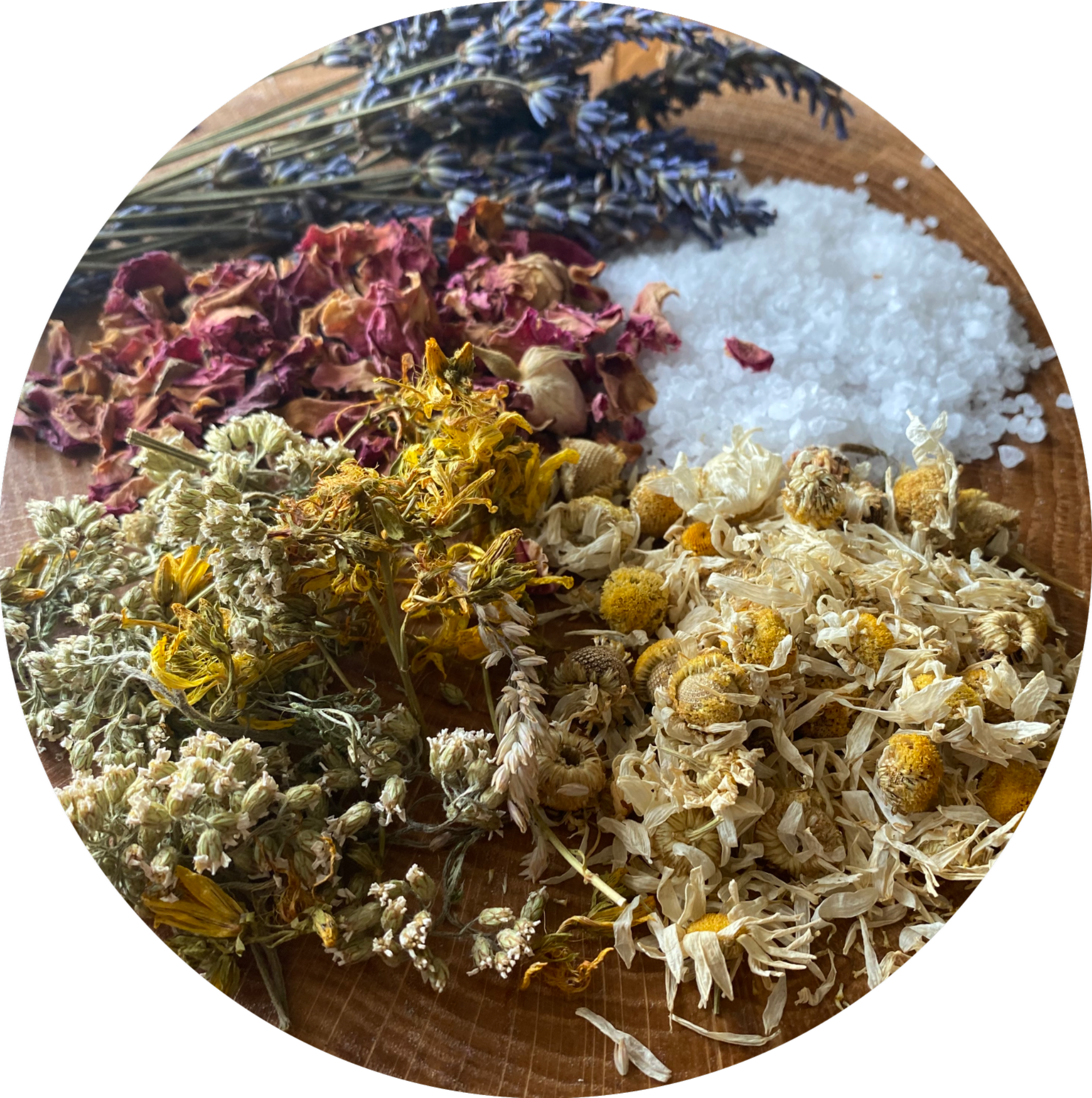složení ~ meduňka . máta . třezalka . mochna husí . kontryhel . řebříček . heřmánek . růže . chrpa . lípa . černý bez . sedmikráska . měsíček . sléz